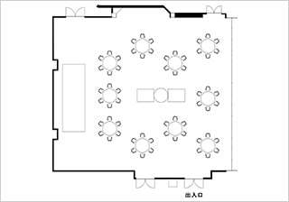 スクール、シアター、ロの字、正餐、ブッフェ(立食)等