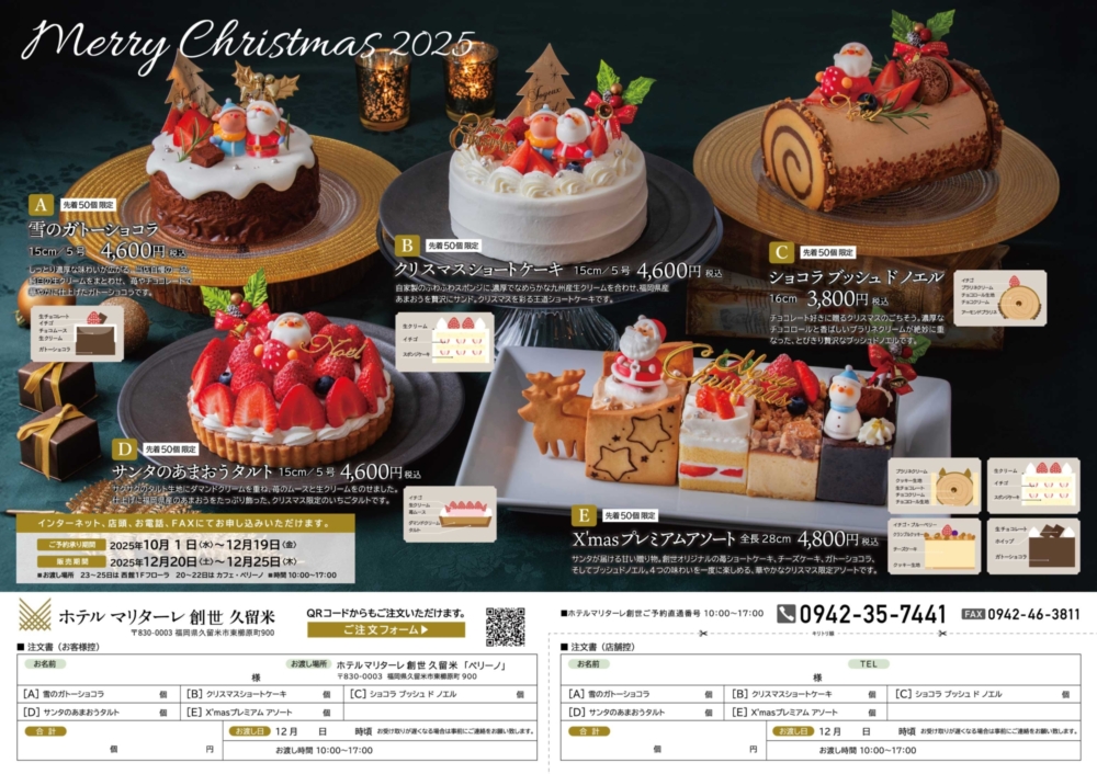 こちらをクリックしてPDFをダウンロードの上、ご使用ください。【クリスマスケーキ申込書】