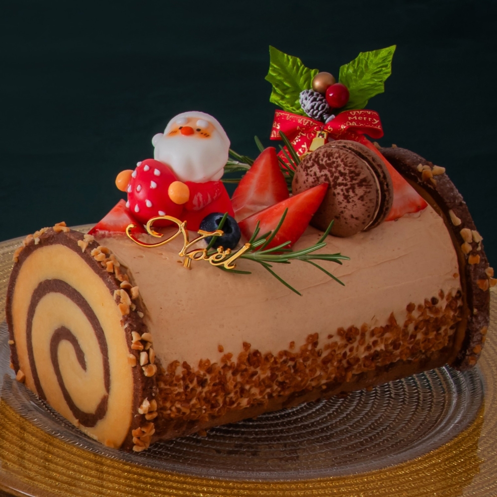 チョコレート好きに贈るクリスマスのごちそう。濃厚なチョコロールと香ばしいプラリネクリームが絶妙に重なった、とびきり贅沢なブッシュドノエルです。