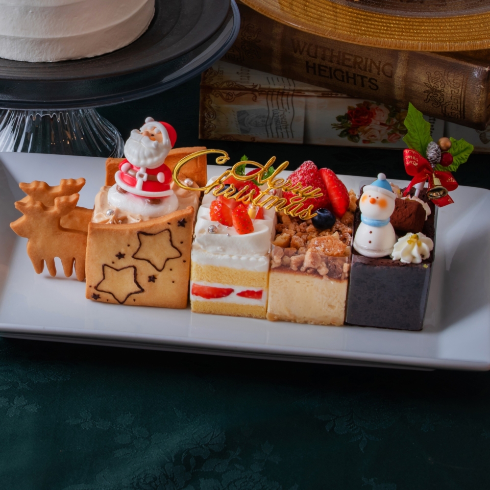サンタが届ける甘い贈り物。創世オリジナルの苺ショートケーキ、チーズケーキ、ガトーショコラ、そしてブッシュドノエル。4つの味わいを一度に楽しめる、華やかなクリスマス限定アソートです。