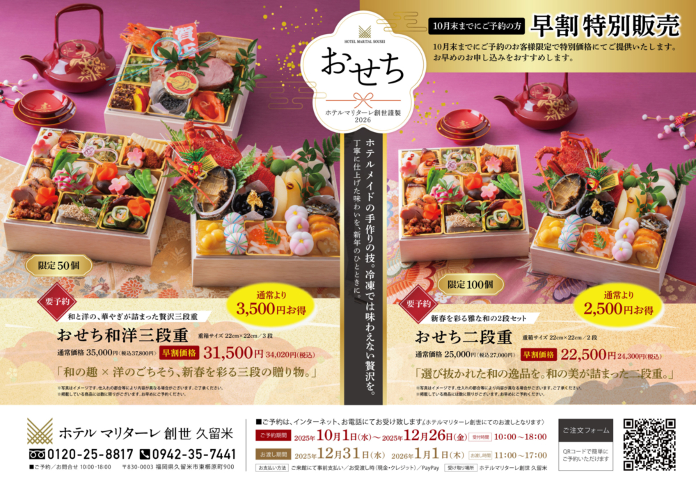 10月31日(金)までのご予約で、通常価格よりお得な特別価格にて承ります。数量限定のため、お早めにお申し込みください。