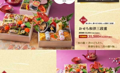 「和の趣 × 洋の逸品」が織りなす、新春を彩る特別な贈り物。最高の品質と心づくしの味わいをそのままにお届けします。ご家族皆様の新年が、笑顔あふれる豊かな時間となるよう、心を込めてご用意いたしました。10月31日(金)まで … 続きを読む 【早割特典】ホテルマリターレ創世「おせち 2026年 迎春」