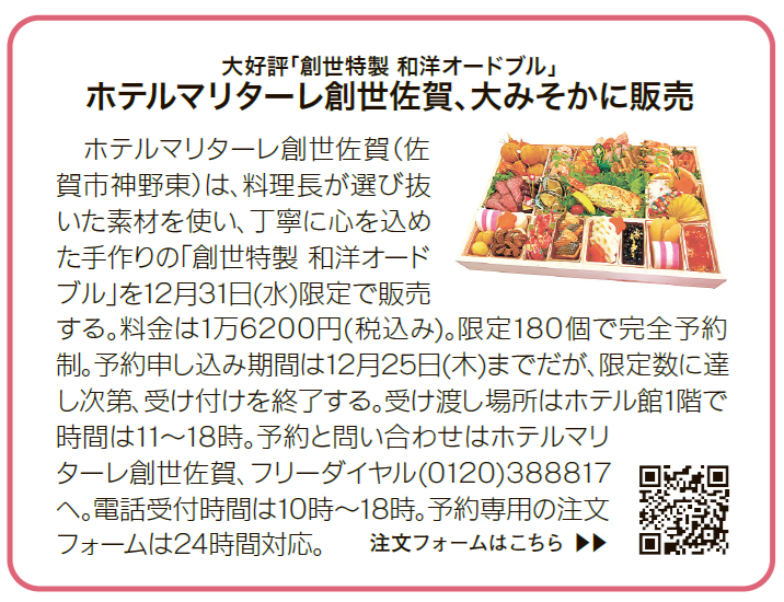 2025年10月8日(水)発行の佐賀新聞アドステーションにて「創世特製 和洋オードブル」をご紹介いただきました。